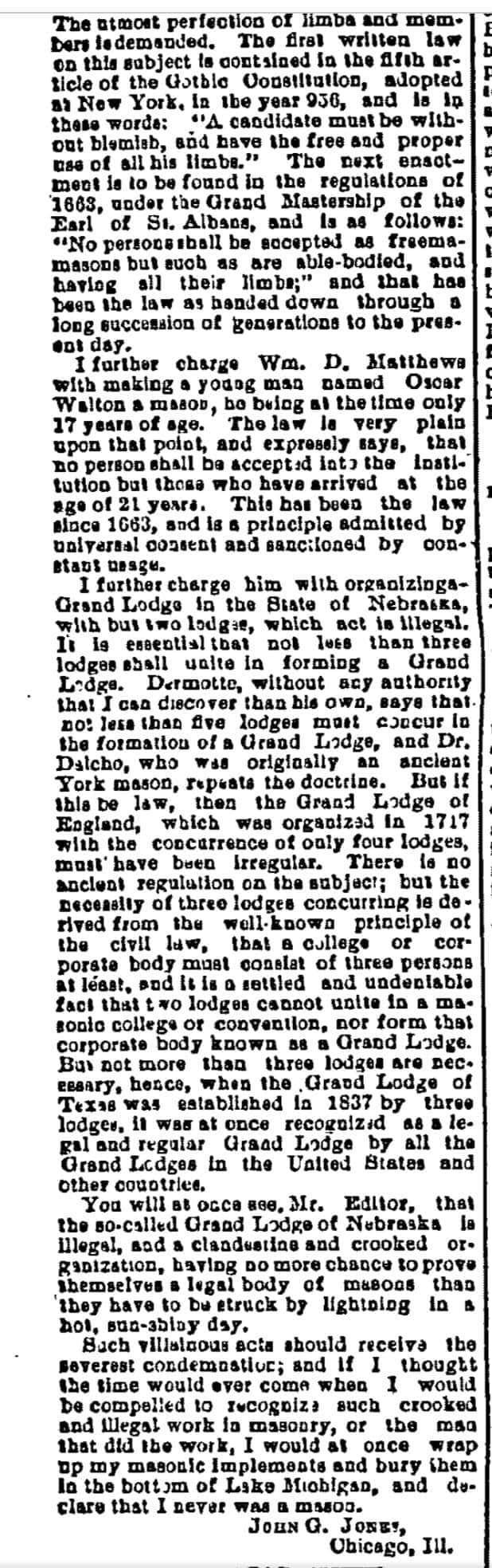 “I denounce the bogus compact-colored Masons!” - John G. Jones, 1903